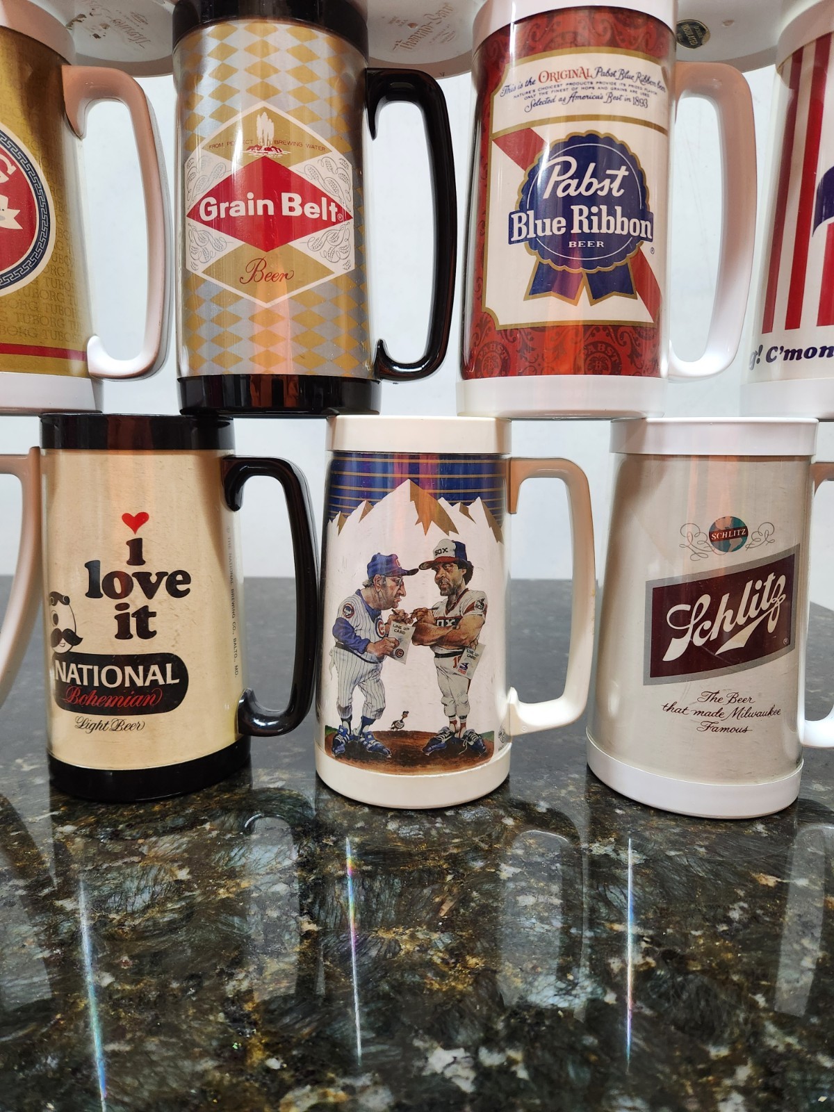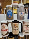 The Vintage West Bend Thermo Serv Mugs are a set of 21 different mugs, totaling 25 pieces, all made in the USA. These mugs feature various brands and a breweriana theme, perfect for collectors or beer enthusiasts. With a focus on American-made drinkware, these mugs offer a nostalgic touch to any collection and celebrate the heritage of American brewing culture.