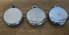 All in used condition with scuffs, scratches, and wear. The left Westclox runs but stops now and then ,so It will need cleaning. The Middle westclox runs well. The right ingraham stops and runs ,so it will need a cleaning.