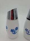 This vintage Westinghouse Gemco USA syrup and sugar dispenser is a charming addition to any kitchen. With a round shape and glossy finish, it features a beautiful cornflower pattern in white and blue. The dispenser has a capacity of 8oz and is made of milk glass, making it easy to clean and dishwasher safe. It comes with a handle and lid, and is handmade with fused glass production technique. The item weighs 11.8 and 14.9ozs and has an impressed backstamp. The dispenser is part of the Gemco product line and was manufactured in the United States in the 1960s. Perfect for antique collectors and lovers of art deco style, this syrup and sugar dispenser is a must-have for any vintage kitchen.