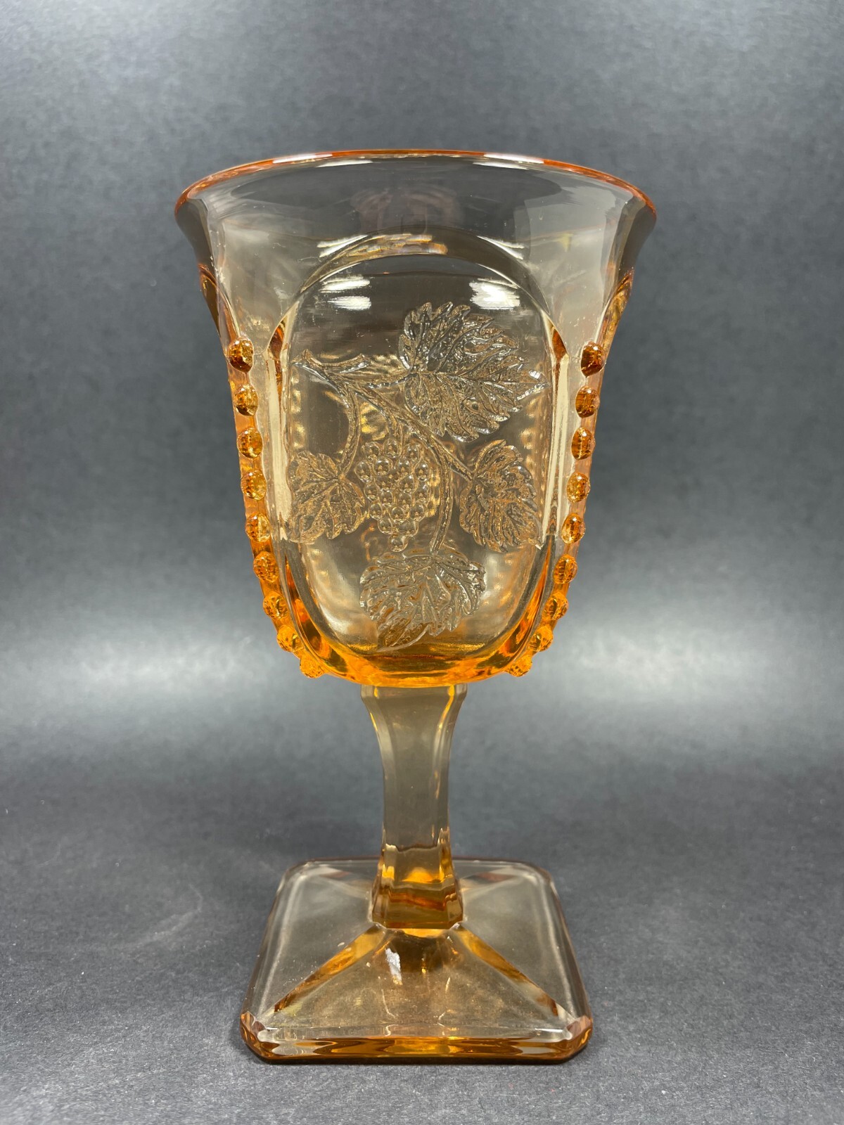 Westmoreland handmade amber peach wine glass/goblet. Rare item. Replacement or addition to an existing set. It is in very good condition, no chips or cracks. It is clean. Measures (approx.): 3.75" DIA rim, 6.25" H. It has the original sticker. Please see photos for more details. Please note that the item is vintage and may show signs of wear. We have done our best to honestly and accurately describe and photograph the item, including possible flaws. What you see are the actual photos of the item being sold. If you have any questions regarding the item, please ask! We DO NOT SELL outside United States. SHIPPING The item will be shipped within three business days after receipt of payment. We ship via USPS to any location within the 48 continental United States, NO INTERNATIONAL SHIPPING. Shipping is calculated by EBAY based on the weight and size of the item plus packaging. We can combine shipping in case you buy multiple items that can be safely shipped together. Thanks for looking!