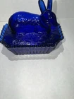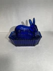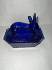 Vintage Westmoreland Cobalt Blue Bunny Rabbit Covered Trinket/Candy Dish Hand blown, so top doesn’t sit well on dish, small imperfection. Top doesn’t fit properly, due to it being hand blown. Please see all pictures for full details!!