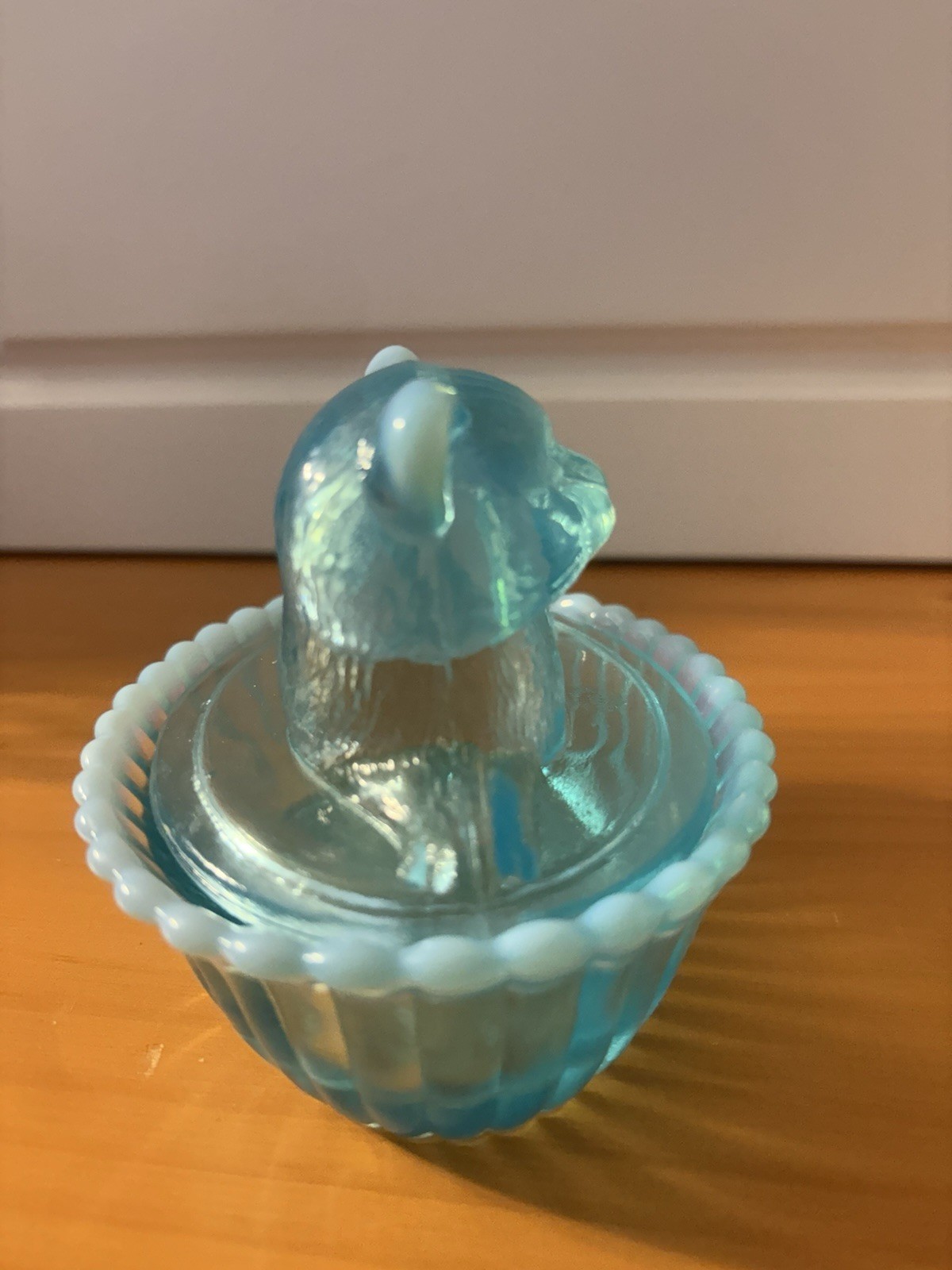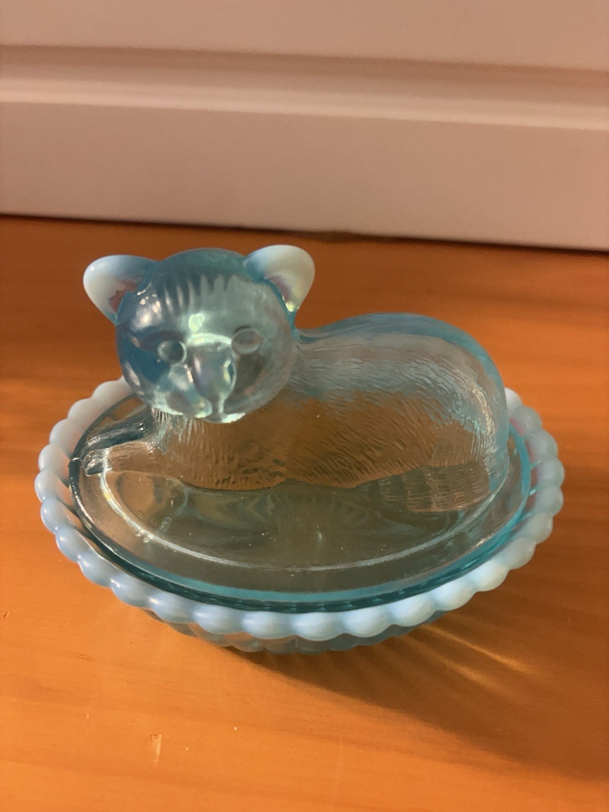 $ 5.28Vintage Fenton Blue Opalescent Button Arch Covered Butter Dish