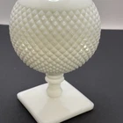 Elevate your home decor with the Vintage Westmoreland English Hobnail Ivy Rose Bowl, a stunning piece of white milk glass that exudes mid-century modern elegance. The 7-inch vase's glossy finish and intricate English Hobnail pattern create a timeless aesthetic, perfect for displaying fresh flowers or as a standalone decorative item. Crafted in the United States, this original Westmoreland vase from the esteemed English Hobnail product line boasts an impressive backstamp that authenticates its heritage. The vase's delicate ivy and rose design adds a touch of sophistication to any room, reflecting a bygone era of American glassmaking excellence.