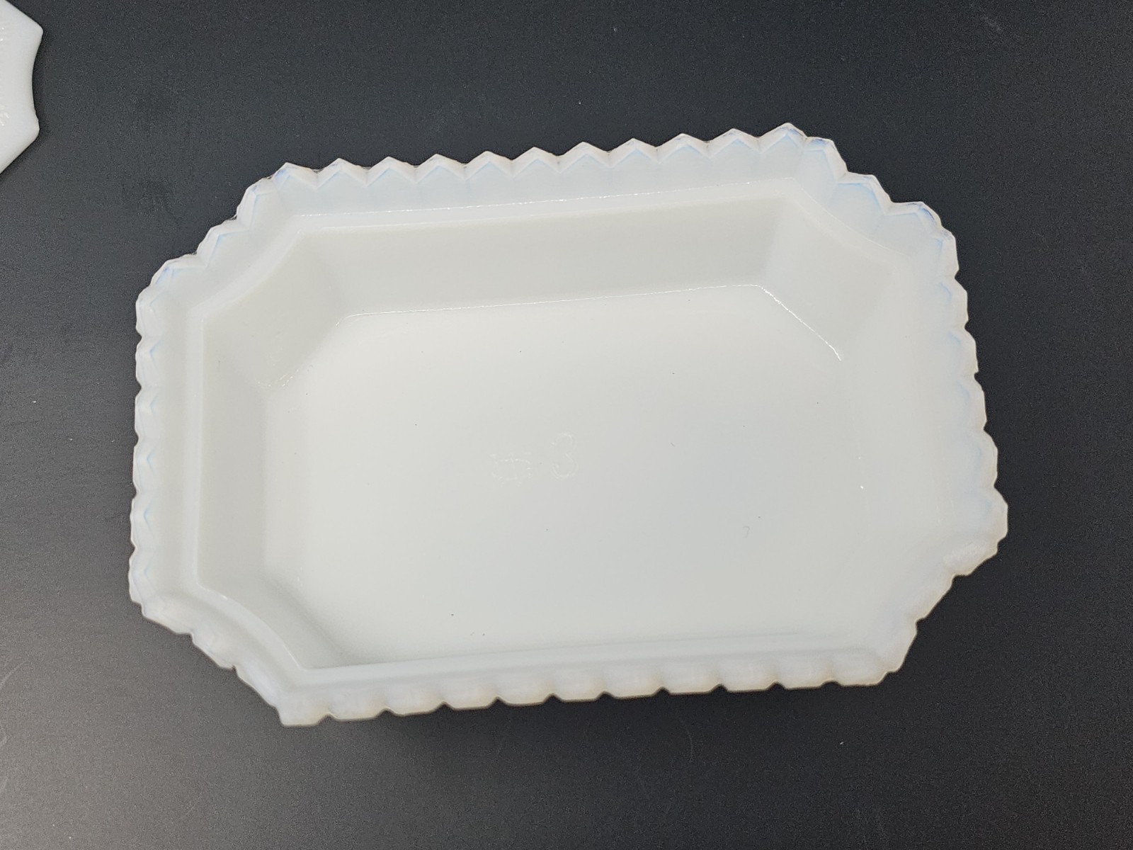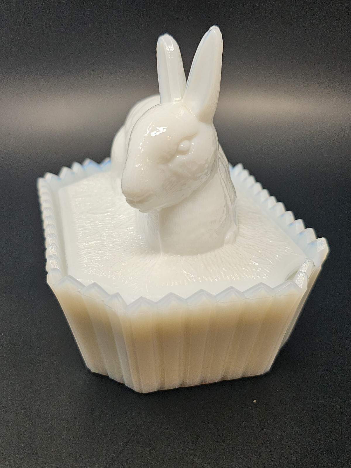 This adorable milk glass soap dish is a delightful vintage find! The rabbit-on-nest design adds whimsical charm to any bathroom or kitchen. The crisp white color and quality craftsmanship show Westmoreland's signature attention to detail. While there's a minor chip (visible in photos), the piece remains in excellent condition overall. Perfect for collectors or anyone wanting to add a touch of retro elegance to their home. The impressed backstamp confirms its authenticity, making it both a functional and decorative treasure.
