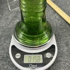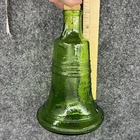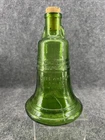 Preowned Vintage Wheaton Glass 1970's Green Liberty Bell Embossed Bottle / Decanter. The bottle measures approx 7.5" Tall (with the cork) x 5” wide and weighs 15.8 ounces. It’s a really nice and unique bottle. Please refer to the pictures for further.