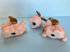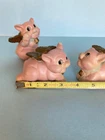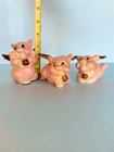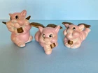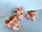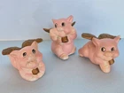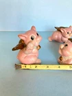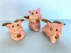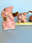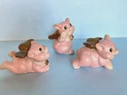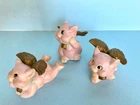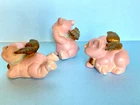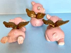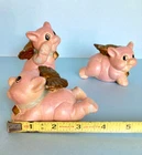 When Pigs fly! Adorable, hand painted, vintage, pigs with wings. Set of three, winged pigs, in good vintage condition with chipping paint throughout. Aged Gold/bronze colored wings. Such a sweet, charming, vintage set! As is ~ please see photos for measurements and condition.