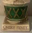 Vintage Whisky Money Hooch Jug Bank. Weathered Beige Jug With Green XXX Label. Likely From The Late 1960s Or Early 1970s. Bank Measures 5 3/8” x 4 3/4” x 3”. Rubber Stopper On Bottom Is Deteriorated (See Images) But Ot Is Still A Nice Piece. Condition Is Used.