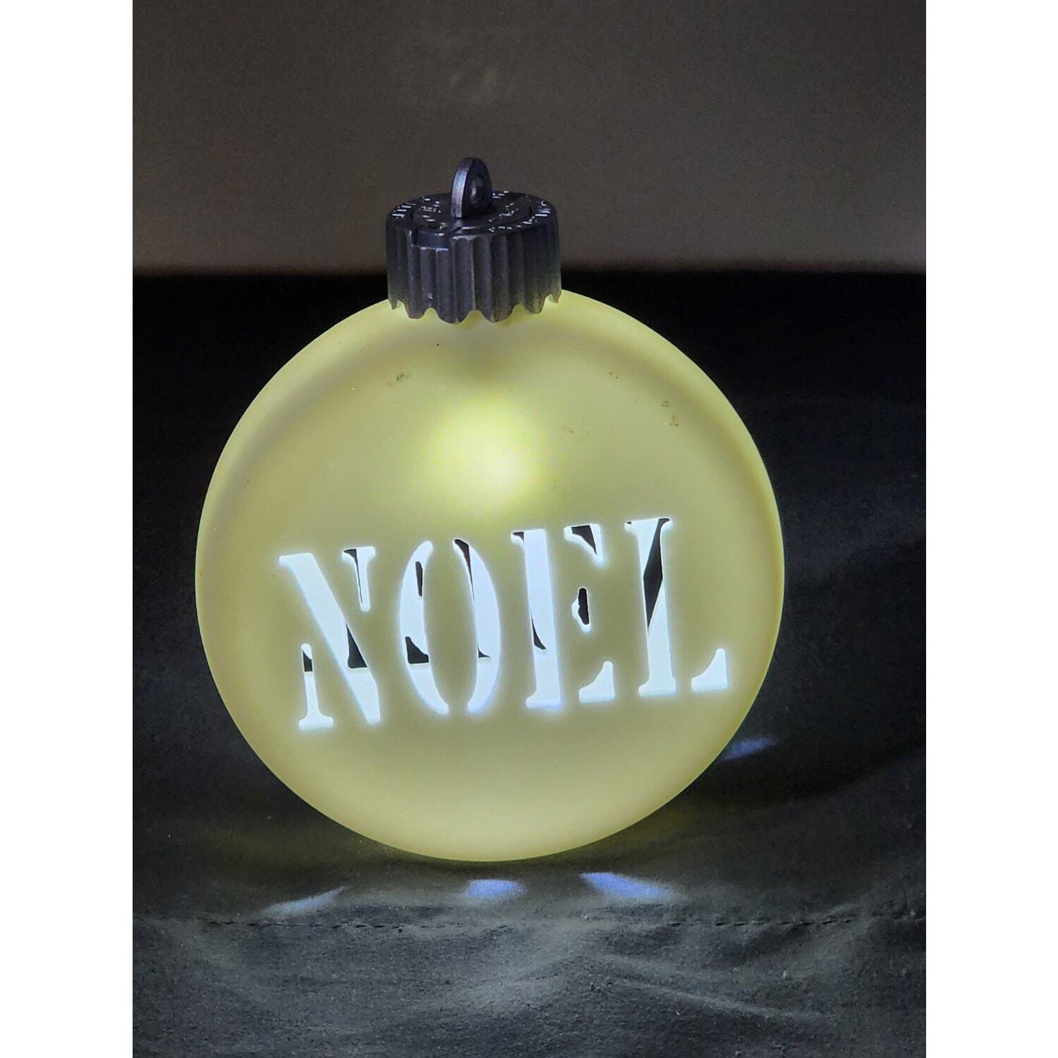 White Ceramic Bisque LED Lighted Hanging "NOEL" 2-Sided Ornament * Beautiful Cut Out Letters "NOEL" Hanging Ornament * On/Off Switch Located on Top w/ Easy Battery Access * Lovely White Bisque Ceramic for Easy Cleaning * Ornament Measures: 4" x 3" x 1" * Images show lighted ornament Pre-Owned / Used: A product that has been used previously. View our listing for full details in our description and check out our photos provided. If there are any imperfections, it will be noted in the description and/or within the provided photos. We appreciate you looking at our listing. Before placing an order, feel free to ask any questions you may have about this item. Upon receiving your order, if you are not satisfied with your order, please contact us and we will address any issue.
