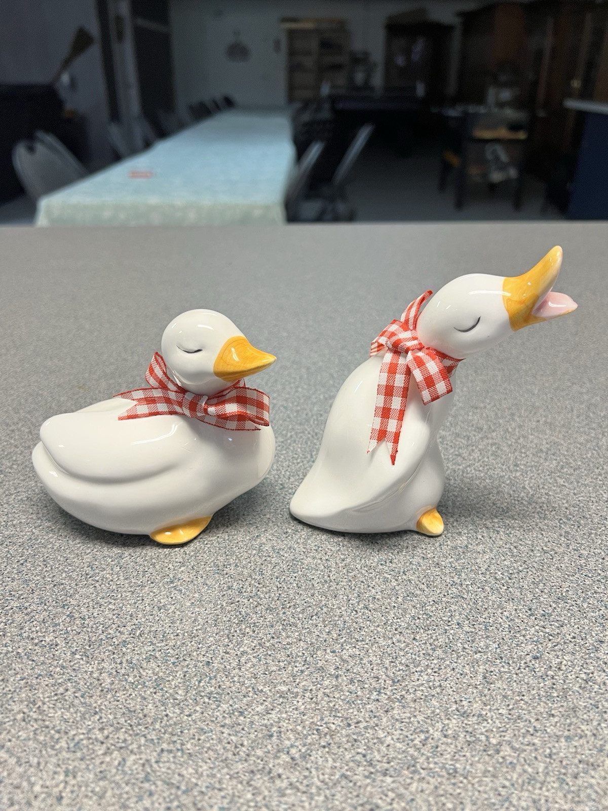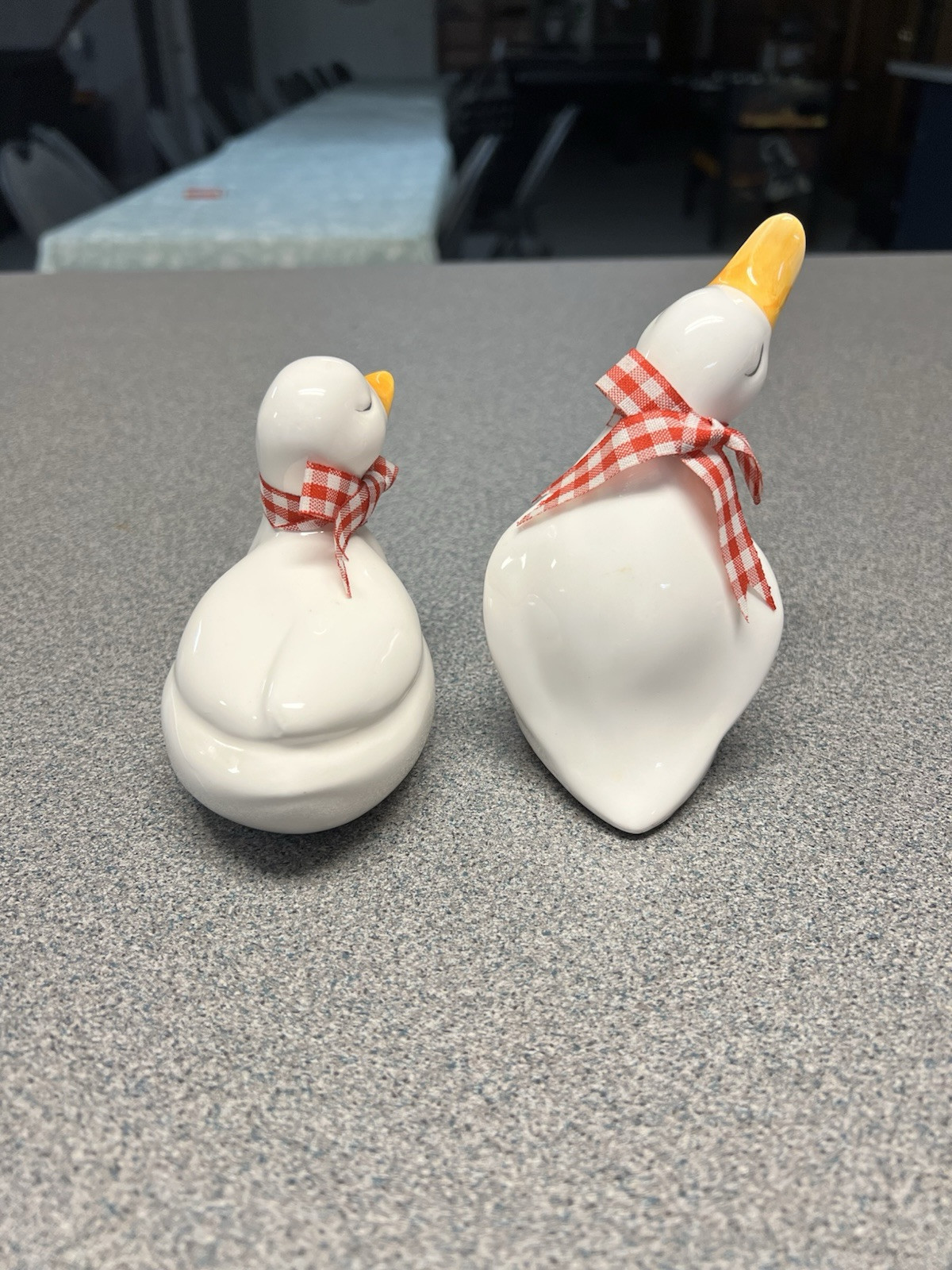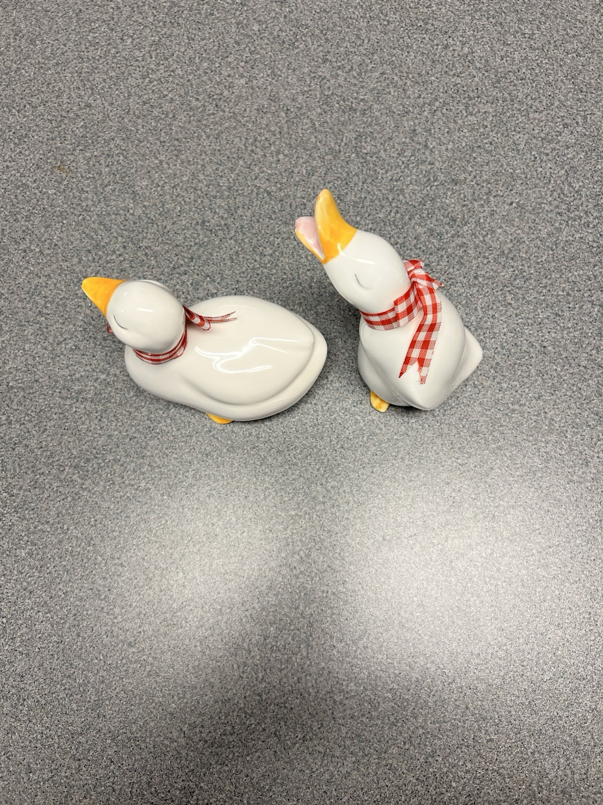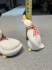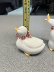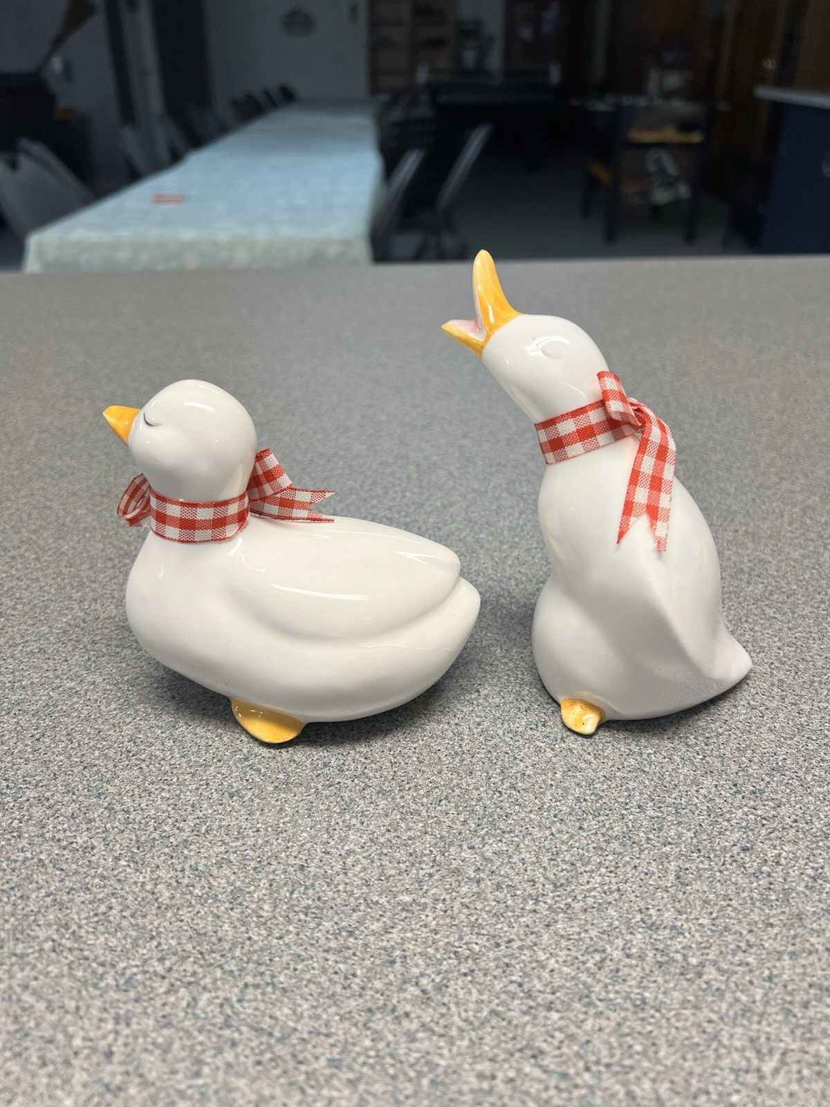 Vintage White Ceramic Ducks (Set of 2) Red Gingham Ribbon Bows minor flaws - see photos