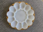 Vintage White Milk Glass Deviled Egg Oyster Plate with Gold Trim