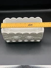 Vintage Westmorland White Milk Glass Paneled Grape Window Box Planter/Vase is a decorative piece featuring a grape pattern on glass. This Vase is designed in a boxing theme with a milk glass production style. It comes in a white color and packaged in a box. The product line is called Paneled Grape, showcasing a classic and elegant design. 8.5” x 4.5”
