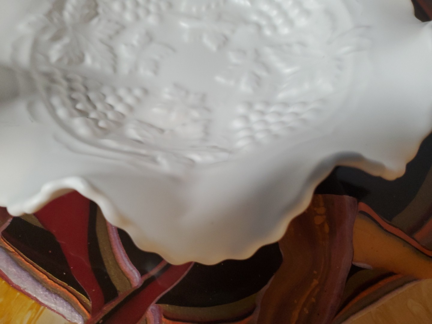Original/Licensed Reproduction:OriginalColor:WhiteFeatures:DecorativeBrand:UnmarkedNumber of Items in Set:1Vintage:YesPattern:FloralNumber of Compartments:1Material:GlassTheme:leavesShape:RoundType:Candy Dish