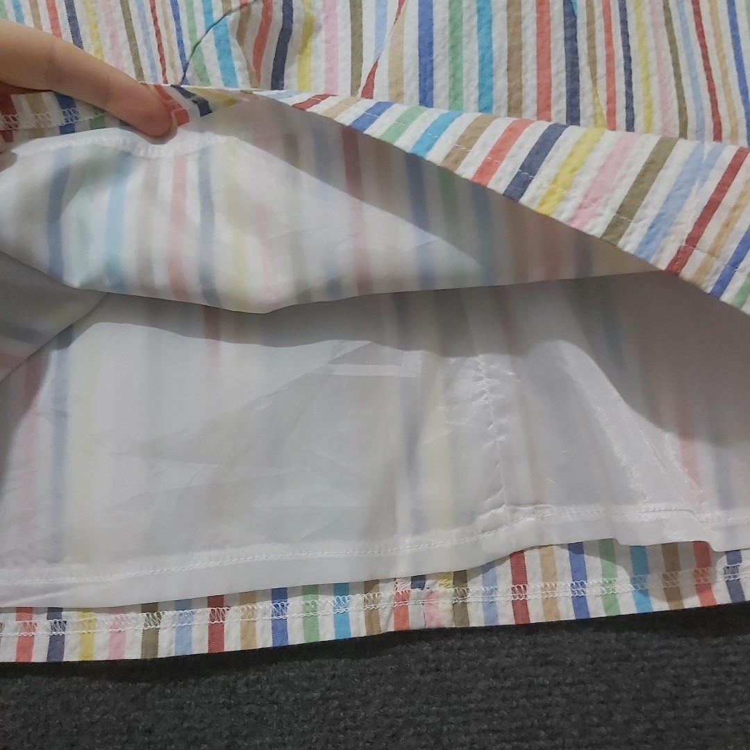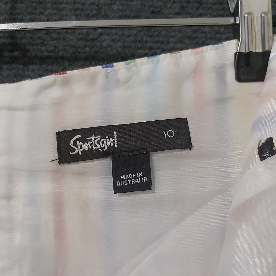 Visit The Rag Traders Closet for hundreds of other quality men's & women's garments! ......IMPORTANT INFORMATION FOR BUYERS...... Garment sizes can vary between brands, eras, and due to wear and washing over time. Teen garments may also have similar sizing to small adult pieces and are not always easily distinguishable. To ensure the best fit, buyers are encouraged to check all provided measurements, review photos, and read the full description before purchasing, as it is the purchaser's responsibility to do so. Description: Vintage Sportsgirl cotton skirt in a textured white seersucker with multicoloured vertical stripes. Fully lined with zip closure. Classic mid-length style with cheerful retro colours. Made in Australia, likely 80s or 90s. Key Features: Brand: Sportsgirl Size: AU 10 Material: Outer 100% cotton, lining 100% polyester Color: White with multicoloured stripes Design: Straight/relaxed A-line Features: Seersucker texture, zip closure, lined, made in Australia Condition: Good — no flaws, vintage condition Measurements: Waist: 80 cm / 31.5 in Length: 61 cm / 24 in Please refer to photos as form part of the description Sent with Australia Post Standard Tracked Parcel Visit our store to view hundreds of other items Combined postage available