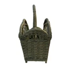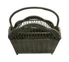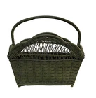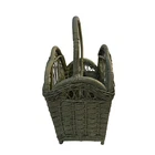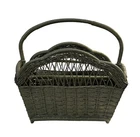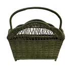 Vintage Wicker Magazine Holder. Painted Moss Green. 18" wide, 9" depth and 18" to top of handle.
