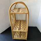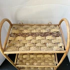 Vintage Wicker Rattan Wall Cabinet Shelf Hanging Bathroom Boho MCM Folding Towel Good use condition, one of the sticks on the back is detached on the top. See photos for details.
