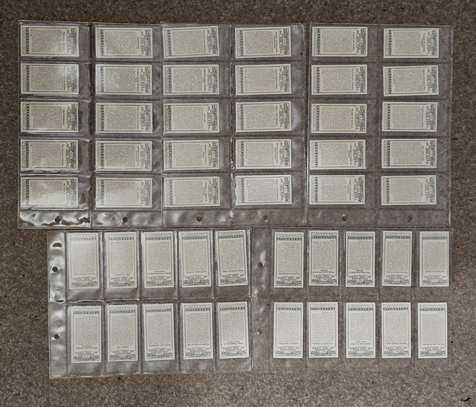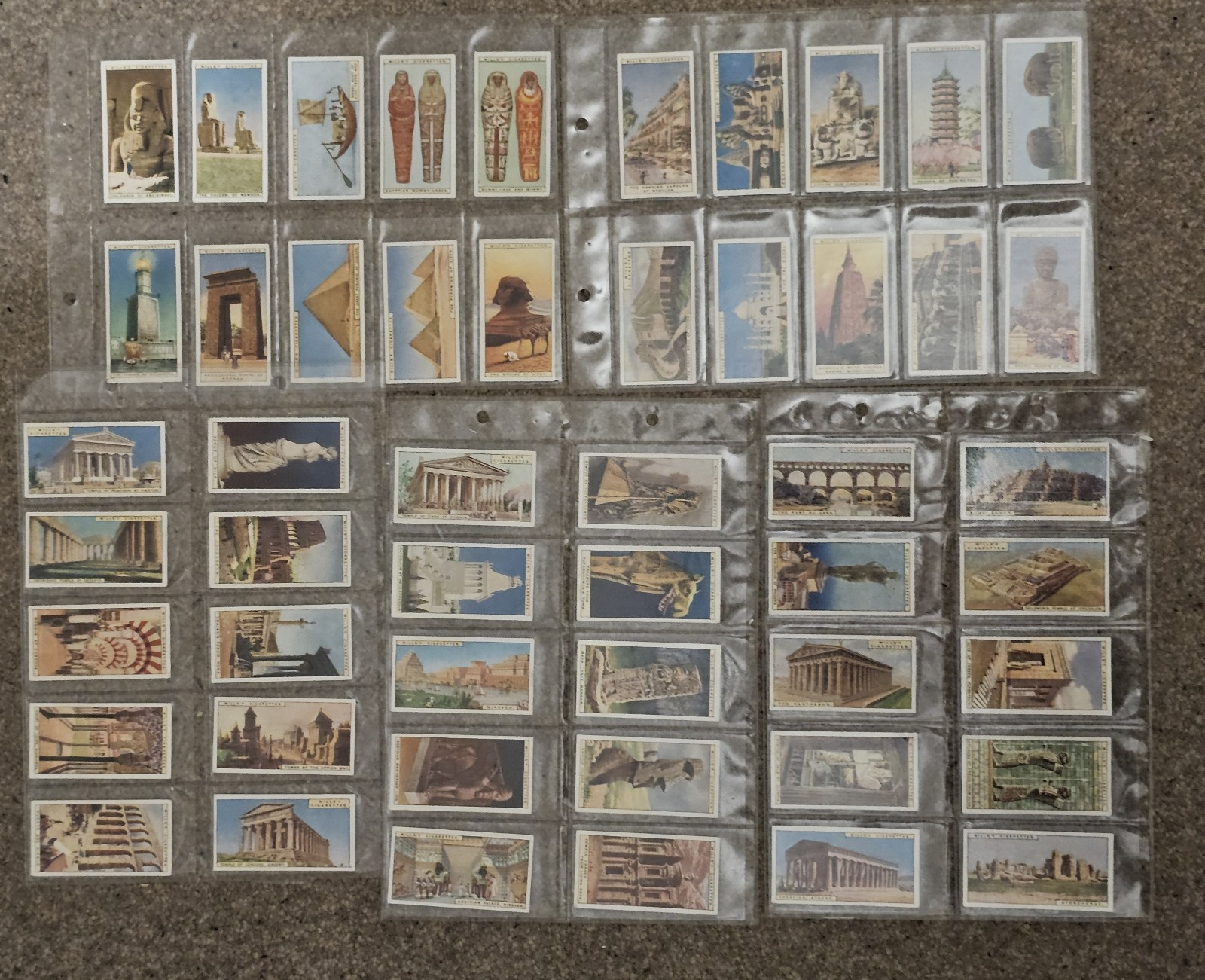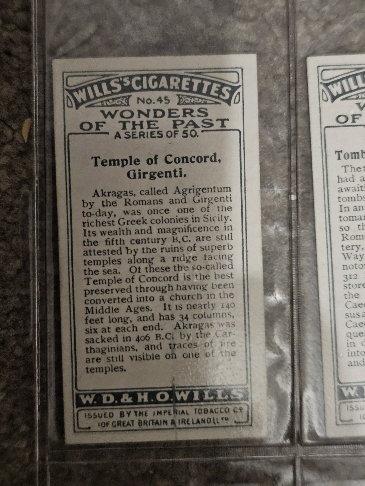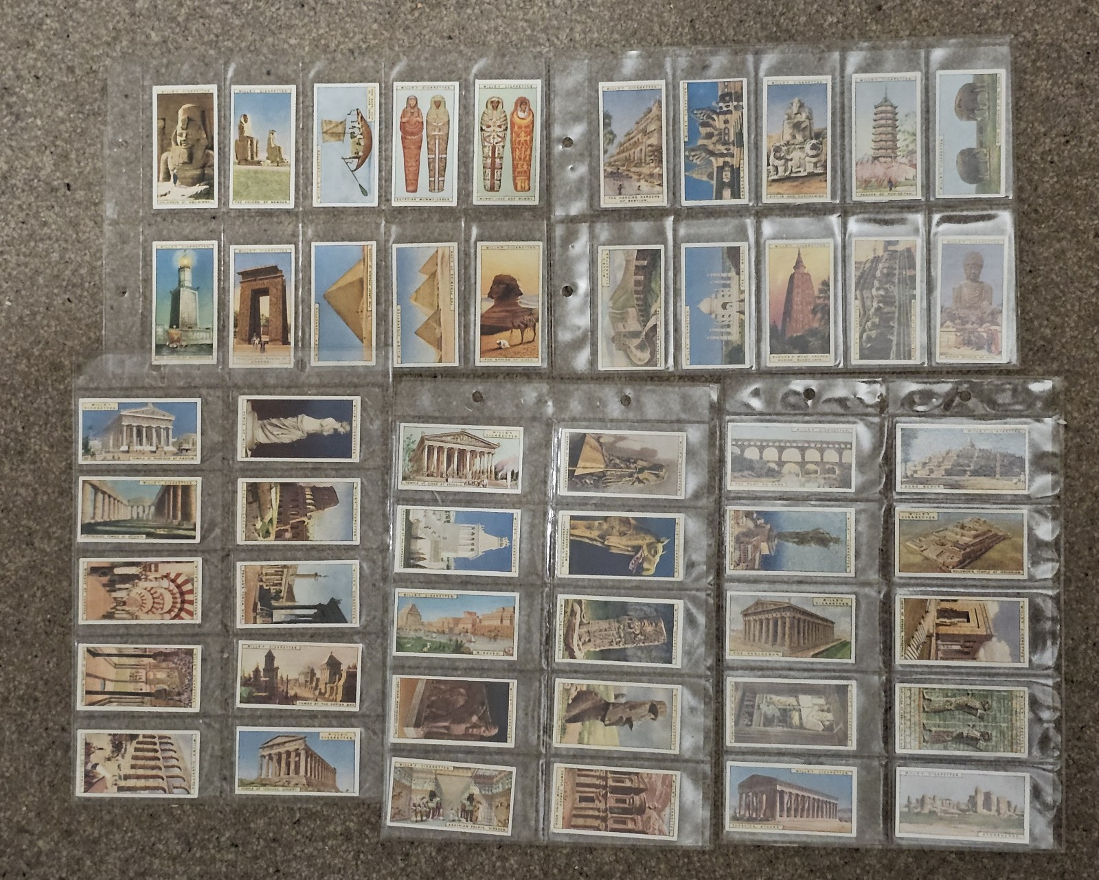 Original vintage cigarette cards issued by W.D. & H.O. Wills as part of the famous Wonders of the Past series. The set features colour illustrations of ancient monuments, temples, statues and historic sites from around the world, with detailed historical descriptions on the reverse. Details: • Series: Wonders of the Past (A Series of 50) • Manufacturer: W.D. & H.O. Wills • Period: c. 1910–1915 • Condition: Very good overall vintage condition, clean cards with strong colour and clear text • Stored in protective plastic sleeves All cards are original vintage items, not reproductions. A superb collectible set for collectors of cigarette cards, ancient history, archaeology, or early 20th-century ephemera.