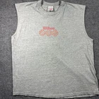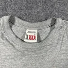 Show off your love for the USA and outdoor activities with this vintage Wilson tank top shirt. Made from lightweight and breathable cotton knit fabric, this shirt is perfect for gym and training, track and field, walking, weightlifting, cycling, school, cross training, CrossFit, basketball, bodybuilding, running, and jogging. The crew neck and pullover closure make it easy to wear, while the gray solid pattern and Wilson logo accents add a touch of style. This shirt is machine washable with medium fabric wash and is available in size 2XL. Get your hands on this Wilson Athleticwear top and show your support for sports and outdoor activities.