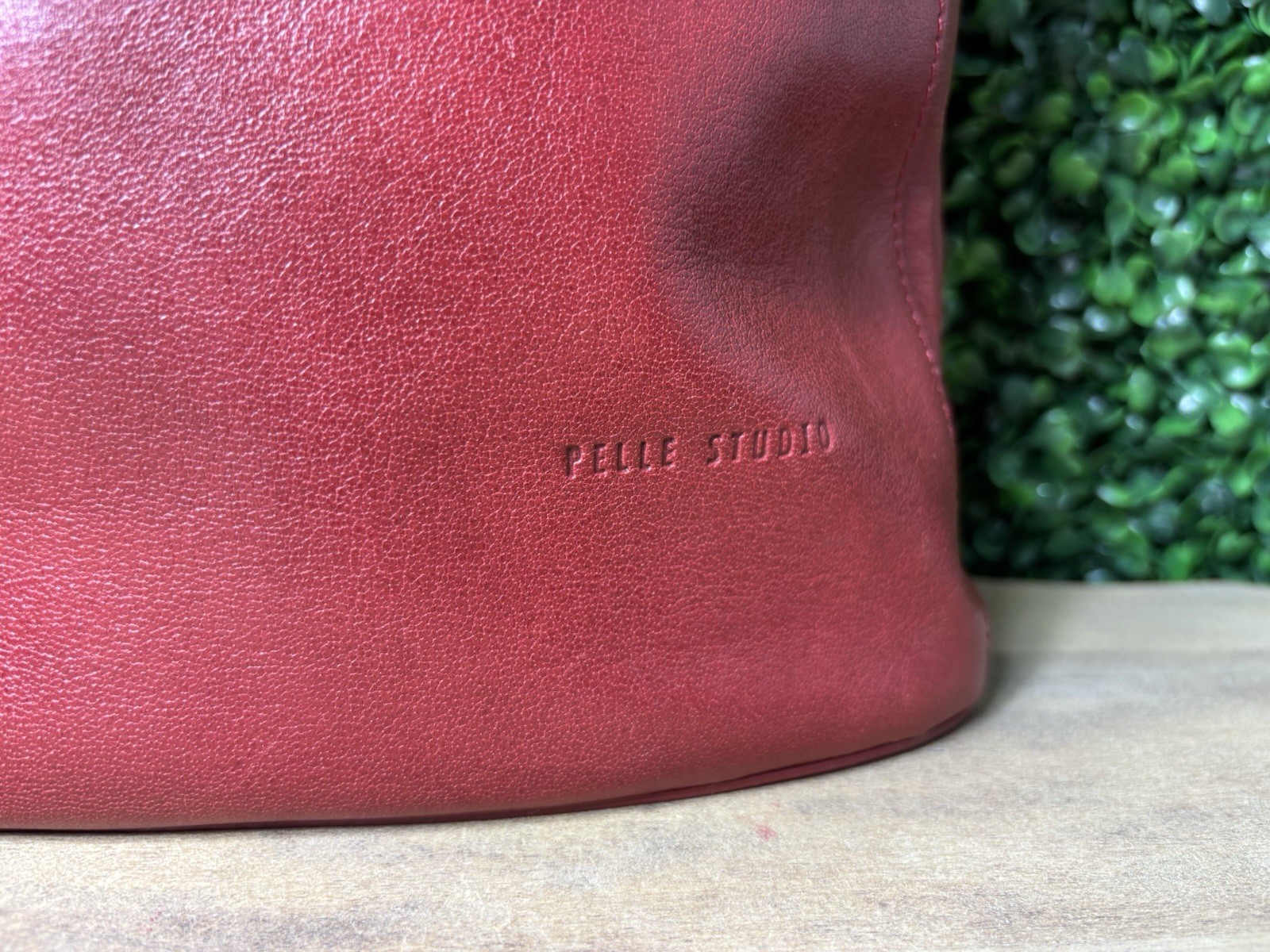 Vintage Wilson’s Leather Pelle Studio Tote Shoulder Bag Red Double Handle. Good pre-loved condition, minor wear. Height about 11” width about 13” strap about 10”