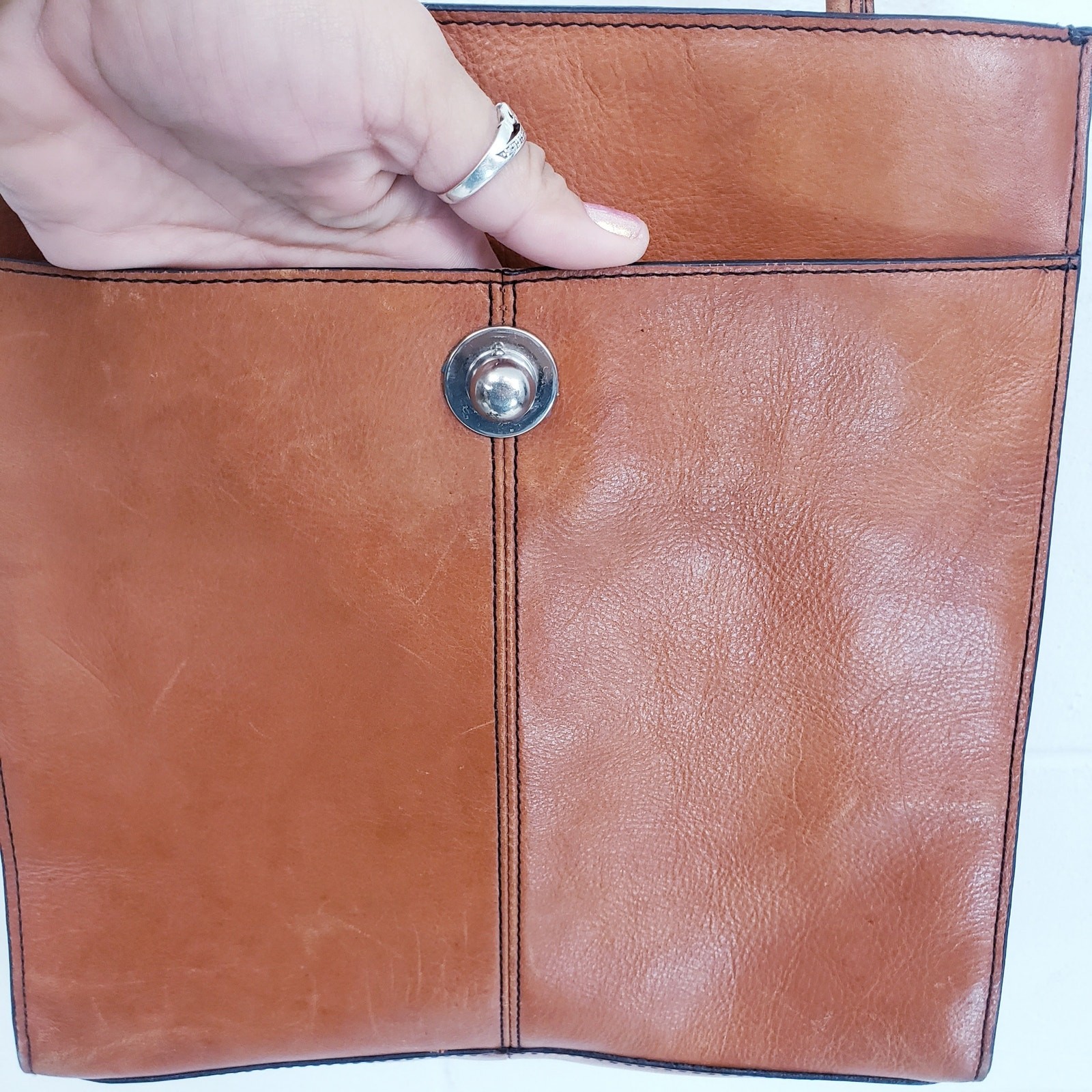 Vintage Wilson's Pelle Studio Brown Leather Shoulder Bag Boho Tote Good pre-owned condition with signs of use present such as light marks to the leather. There is also some discoloration to the lining fabric. No holes. Leather is soft, supple, and flexible. Please see the examples provided in the listing photos. Measures approximately 11"x10"x3" with a 15" strap drop. Large inner compartment with inner zipper pocket. Large front pocket. Unique magnetic closure. Thank you for looking!