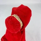 Here is a vintage Christmas Caroler. Made in Japan. She measures a little over 9" tall (measuring to the top of her head and not the top rim of the hat) Music plays and she moves around. There is a wind up knob in the back. I'm not sure what the song is. The velvet dress has a hole in it, shown in the last photo. There are folds on the velvet dress front that have velvet worn off. Yellow/Browning on the white fur. There is a spot on her hat that you can see in the second photo. This is a nice piece to add to your Christmas collection!
