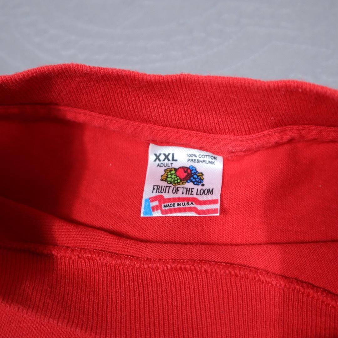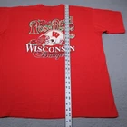 Brand: Fruit of the Loom Team: Wisconsin Badgers college football with large Rose Bowl 1994 graphic featuring roses and helmet on the front. Item: Vintage mens short sleeve crewneck shirt in solid red. Tag size: XXL Adult; intended for mens sizing. Material: 100% cotton preshrunk, made in USA (per neck tag). Details: Multicolor front screen print with Wisconsin Badgers and Tournament of Roses logos, straight hem, plain back. Ideal for Wisconsin Badgers fans, Rose Bowl collectors, or 1990s NCAA football apparel enthusiasts.