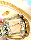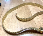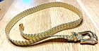 Add a touch of glamour to your outfit with this vintage Day-Lor braided woven belt in gold. The belt is more than 39 inches in size and has a normal width of 1 inch. The braided pattern and metallic buckle accents give it a unique and stylish look. This belt is perfect for women who want to add a vintage touch to their wardrobe. It is made of unknown material and has no modifications. The belt is adjustable and comes with a plus size type. It is a great addition to any outfit and will make you stand out in a crowd.