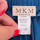 Vintage MKM Designs 90s Y2K Wide Cropped Flowy Leg Glitter Boho Whimsy Gypsy Ren Faire Women's Palazzo Pants Culottes Gauchos Deep teal blue with gold glitter embellished accent elastic waist Pull on Polyester spandex Hand wash Made in USA Sz Medium waist 28 rise 12 inseam 23 Good condition