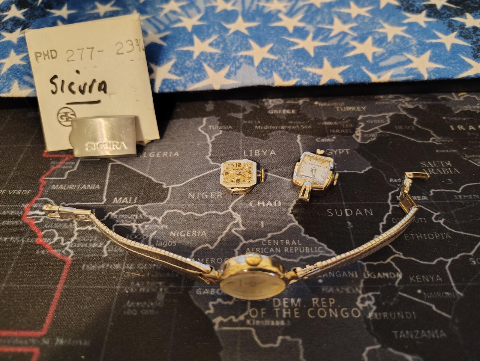 This lot is for woman's Longines watch lot. The two with no bracelets are running The one with the bracelet is not running, I did not try to fix it so it could run if you mess with it. also have a very rare Sicura bracelet clamp in great shape. I put some more Woman's watches; you have a couple Bulova running. Next is an Enzo, with some Diamonds runs, then the Ingersoll Mickey Mouse she runs, Next is a Hopalong Cassidy all original, then a Gotham 17 jewel watch runs there is one Bulova 23 watch that needs service it's the Siver -tone diamond shape. The Girard Perragaux also runs.