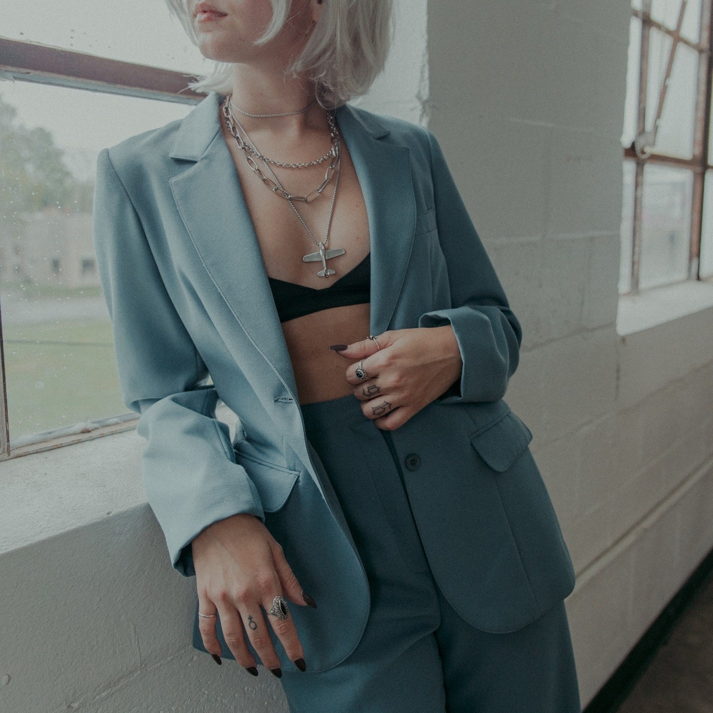 Vintage two-piece pant suit set by Panther in a beautiful muted blue tone. Features a structured blazer with a tailored fit and matching high-waisted trousers for a clean, polished silhouette. Details: Brand: Panther Style: 2-piece suit set (blazer + pants) Color: Dusty powder blue Blazer: tailored fit, front button closure, pockets Pants: high rise, straight leg Lightweight structured fabric Measurements (approx): Waist: 13” flat (26” waist) Inseam: 31” Pit to pit (blazer): 18” Sleeve length: 16” Fits approximately like a modern Small (please refer to measurements) Condition: Good vintage condition vintage suit set, womens blazer set, pant suit, 90s minimal, office core, quiet luxury, tailored set, vintage tailoring, minimalist outfit, model off duty, business casual, clean girl aesthetic, workwear vintage, capsule wardrobe