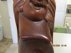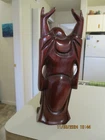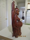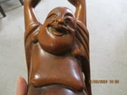 Up for sale is this Happy Buddha wood statue. It is about 11 1/2 inches tall. I was told that the previous owner traveled to many places in the world while in the military and acquired items along the way. I am not sure the age of this piece. It does have a partial tag on the bottom, but I can't make out where it came from. It looks to be in good vintage condition. It has a couple of marks on it (see pics). The right thumb does have a mark on it. I don't know if it is a crack or what. It's not loose at all. So it may just be on the surface.