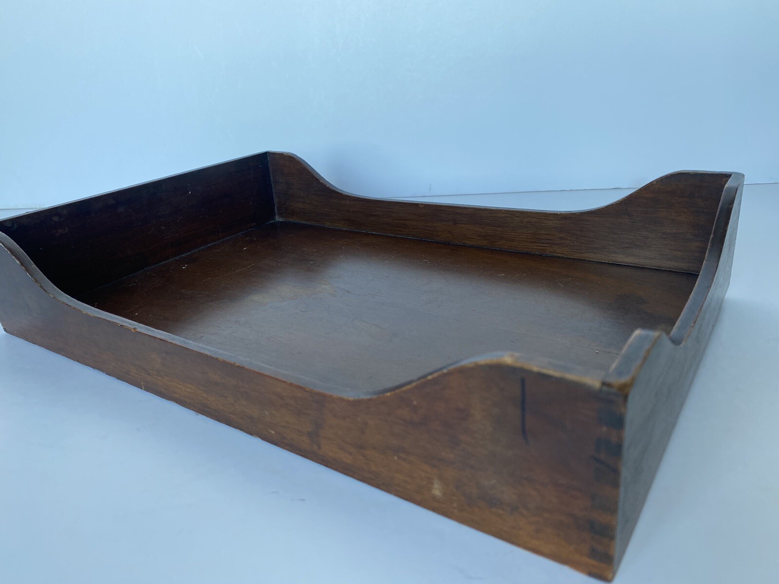 Good pre-owned condition - shows normal signs of use. Knicks and stains Vintage Wood Legal Tray Desk File Dovetail Corners 10x15 Felt Bottom Please see photos as they are part of the description