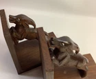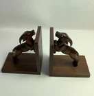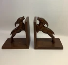 Vintage Wooden Carved Jumping Gazelle Book Ends. Condition is Used. Shipped with USPS Ground Advantage.