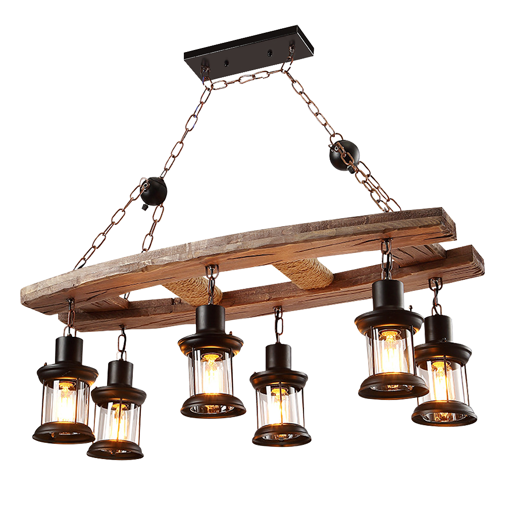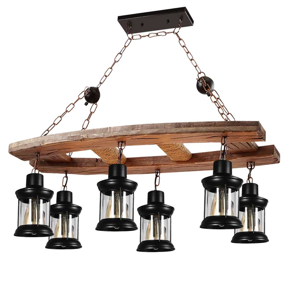 $ 97.426-Light Wooden Chandelier Vintage Pendant Light Hanging Ceiling Fixture Lamps