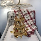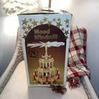 This vintage wooden Christmas nativity windmill carousel is a charming addition to any room. Its multicolor design and traditional style make it a perfect piece for the holiday season. The carousel features a revolving and rotating windmill that adds a unique touch to the overall design. Crafted from high-quality wood, this medium-sized carousel is a great collectible for adults and a perfect addition to any Christmas around the world collection. Whether you're looking for a decoration to go with your Christmas tree or a unique gift for a loved one, this vintage styled wooden Christmas nativity windmill carousel is sure to bring joy to any room. Box is in bad condition. Windmill has very little cosmetic damage, if any. Please see photos for details