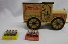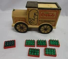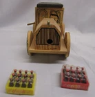 This is a vintage Wooden Coca Cola Delivery Truck. It's 8" x 3.5" x 5". It comes with 2 wrapped miniature cases of Coke bottles, 1 case of Tootsie Toys Pop Bottles and 5 cases of Buddy L Pop Bottles. (all miniature). It originally played music but the mechanism for playing music is missing. Still a unique display item for your Coke collection. Please check out our pictures and our store for many more items. Free shipping