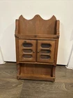 The "Vintage Wood Spice Wall Hanging Cabinet Shelf" is a farmhouse-style spice rack made of wood and metal. It can be mounted on the wall or set up freestanding, measuring 20 inches in height, 12.03 inches in length, and 2.75 inches in width. The color of the spice rack is brown, providing a rustic and vintage look for organizing spices in the kitchen. Vintage in good pre-owned condition with some signs of wear. Please take a close look at the photos and details below. +measurements vary slightly +no returns accepted +All packages are shipped with haste and care.