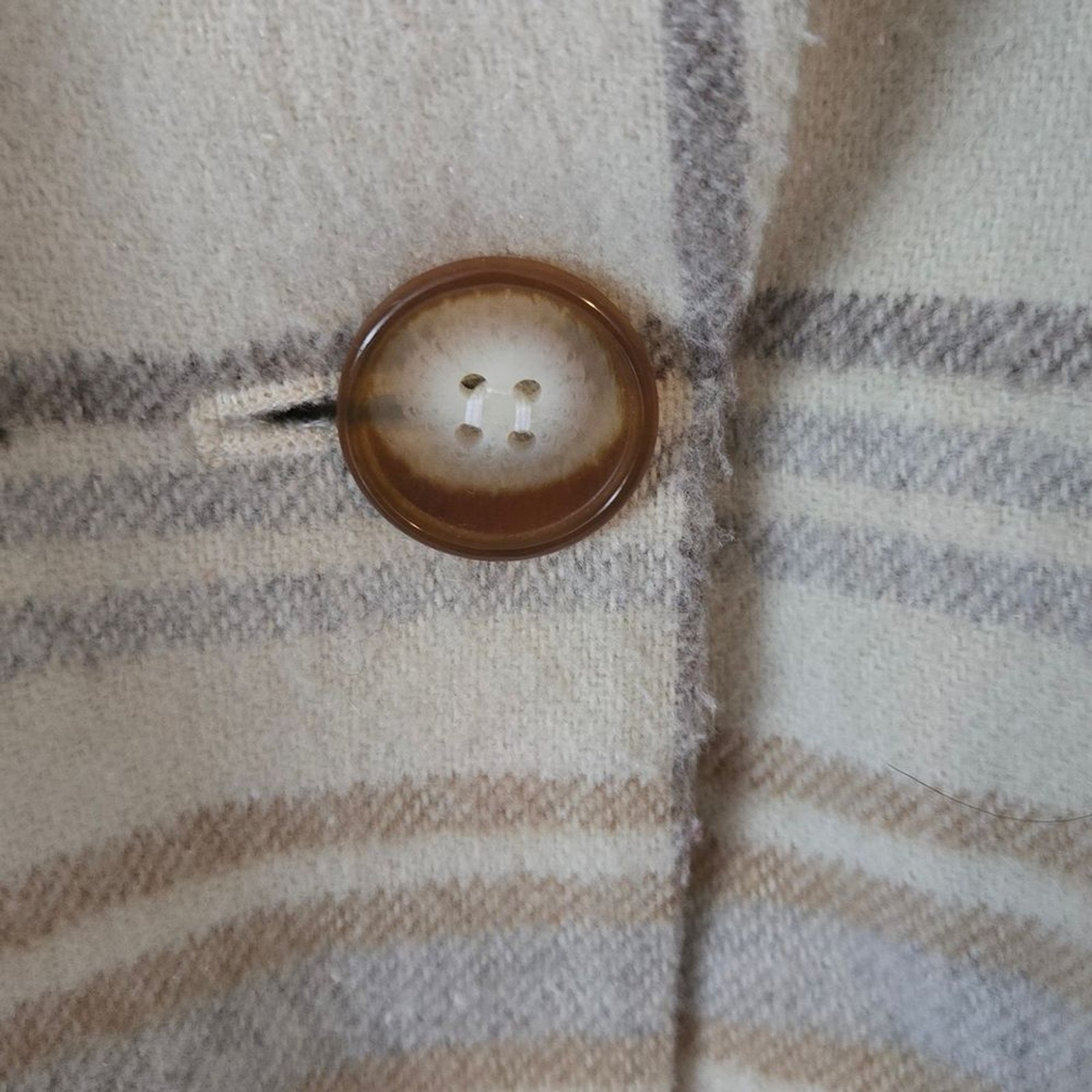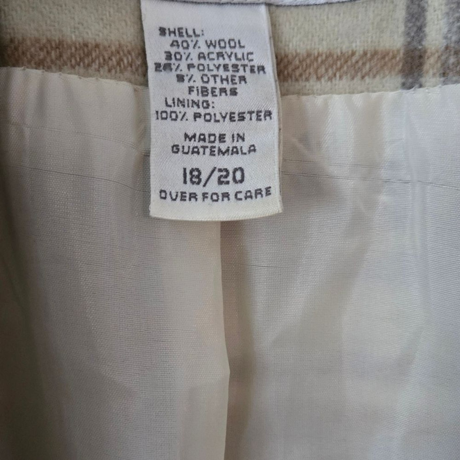 Stylish Kathryn Deene wool blend plaid blazer with a classic fit. Features a single button closure. Ideal for versatile styling.