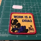 Vintage Work Is A Drag Sew On Embroidered Patch