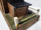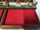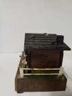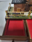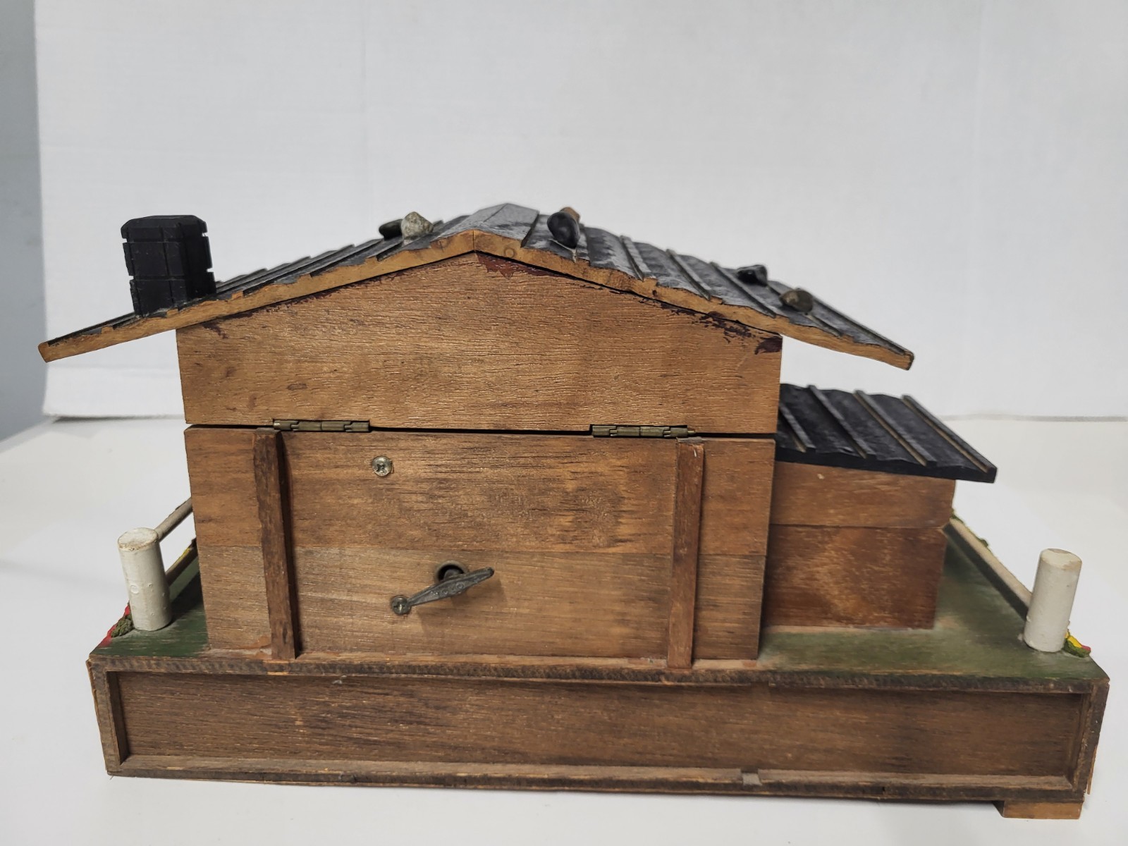 Vintage Working Himark Japan Wooden Handcrafted Cottage Music Jewelry Box. Plays "Raindrops Keep Falling On My Head" Beautifully. 2 Drawers, 1 Side Box & 1 Main Mirrored Compartment, all Red Velvet Lined. 1 drawer missing knob. No ballerina. As Is in Great Vintage Condition.