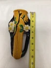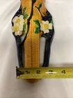 This is a vintage w all pocket planter or vase with flowers on a woven basket. It is unmarked and origin is Japan. It is in very good condition for its age with no chips, cracks or crazing. It is very colorful and it measures approximately 8" tall, 2-1/2" wide at the top, 4-1/4" wide in the middle, 2-3/4" wide at the base and 2-1/8" deep. It has a hole for hanging. You could put cut flowers in it, plant inside it or use it for fake plants. I'm not an expert so please look carefully at the pictures and message me with any questions prior to purchasing.