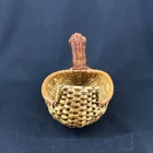 This vintage woven wicker duck basket is a charming addition to any farmhouse or rustic decor. The medium-sized basket is perfect for displaying on a table and features a woven design with a brown color scheme. The basket is handmade and has a duck shape, making it a unique and whimsical piece. The basket is suitable for all occasions and is perfect for teens and adults alike. It is an original, one-of-a-kind piece that is sure to delight collectors of decorative items. The basket has no closure and is made of wood, giving it a sturdy and durable quality. Add this vintage duck basket to your collection today!