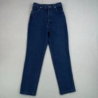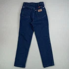 Vintage Wrangler Jeans Womens 8 Blue Dark Denim Country Western Cowgirl Cut USA Condition: - Overall in good used condition. - No rips or holes. - Nice wash. - Made in USA. Size: - Tagged a womens 7/8x32, inseam measures 28" Measurements: - Previous washings may change the sizing written on the tag. - Please refer to the photos above for all measurements. - Please compare our measurements to that of one of your favorite garments. - Please note, item measurements are approximate . All items are bagged and sealed after being photographed, then stored in a smoke free environment to ensure the item is exactly the same as when photographed. I carefully package and ship daily. Feel free to contact me with any questions. All items have been washed per eBay standards & policies.
