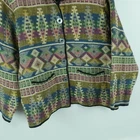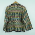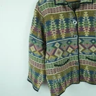 Vintage XL Jacket 90s Woven Tapestry Southwest Aztec Cowgirl Western Grannycore Maximalist Pastel Multicolor There is a worn area above second button on front. It's not a total hole but some of the stitches are missing giving a different look to the threads. It is 100% cotton. Please see all photos for condition and check the measurements for size. Shoulders 18" Sleeve 22" Chest 44" Length 24"