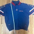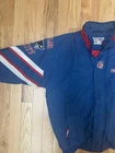 Vintage 90s New England patriots jacket The jacket has a good amount of wear on it. Blemishes/fading/ stains and a rip that’s shown in the photos! The hood for this jacket is missing and not included The zipper is also is also not attached any longer and is not included Measurements shown in photos Please use the photos provided to ensure your own satisfaction with the jacket and please message me with any questions or concerns as I will be glad to help! Thank you!