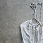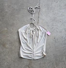 Vintage Y2K 90s Fairy Bling Halter Gem O Ring Ruched Club Rave Crop Top Shirt L Deadstock condition Super cute Stretchy Chest: 14 Length;15