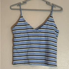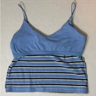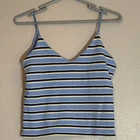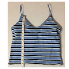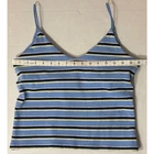 Vintage Y2K 90s No Boundaries Striped Cami Tank Top Womens Medium Blue Festival Y2K 2000s 90s 1990s Surf Surfer Skate Skater Skateboarding Cyber Emo Emocore Grunge Grungecore Alternative Vans Warped Tour Festival Party Casual Unique One Of A Kind One-of-a-Kind OOAK VTG tank top with built in shelf bra. Blue with lime green, white and navy stripes. 95% cotton, 5% spandex. Made in Hong Kong. PLEASE READ – VTG tag size Juniors 11/13, measurements indicate would be todays size medium, please review measurements for sizing. Great preowned condition with light signs of wear. Professional, highly rated seller, quick shipper, open to offers! Approximate measurements: Bust (pit to pit): 16 inches Length (shoulder to hem): 15 inches Color: High Tide