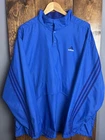 Vintage Y2K Adidas Pullover 1/4 Snap Button Sport Windbreaker Jacket Blue Men XL Width: 27” Length: 30” Small spot on right arm. Please be aware that used, vintage, or older items may show a few signs or wear or slight fading due to age. Anything visible, such as stains, rips or holes are a possibility, if not shown initially. Measurements are taken from armpit to armpit and from the neck of the shirt to the bottom hem.