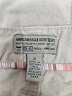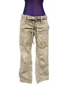 Vintage Y2K American Eagle Khaki Cargo Straight Leg Utility Pants Size 2 U5 Vintage Y2K American Eagle Khaki Cargo Straight Leg Utility Pants Size 2 U5 Features vintage Y2K American Eagle khaki utility cargo pants, low rise, button fly closure, tie belt, reenforced knee patches, 6 pockets, 2 slash pockets, 2 front and back patch pockets, straight leg, exposed seams, 90s vibes. Measurements laying flat waist 14.5" front rise 7.5" hips 18.25" inseam 29.5" leg opening 8.5" Fabric 100% cotton This is a pre-owned item that may show signs of wear. A couple of small spots and fraying on back hems.
