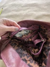 I love this color! Last 3 images point out blemishes. There is also a tear on the lining as seen in images.