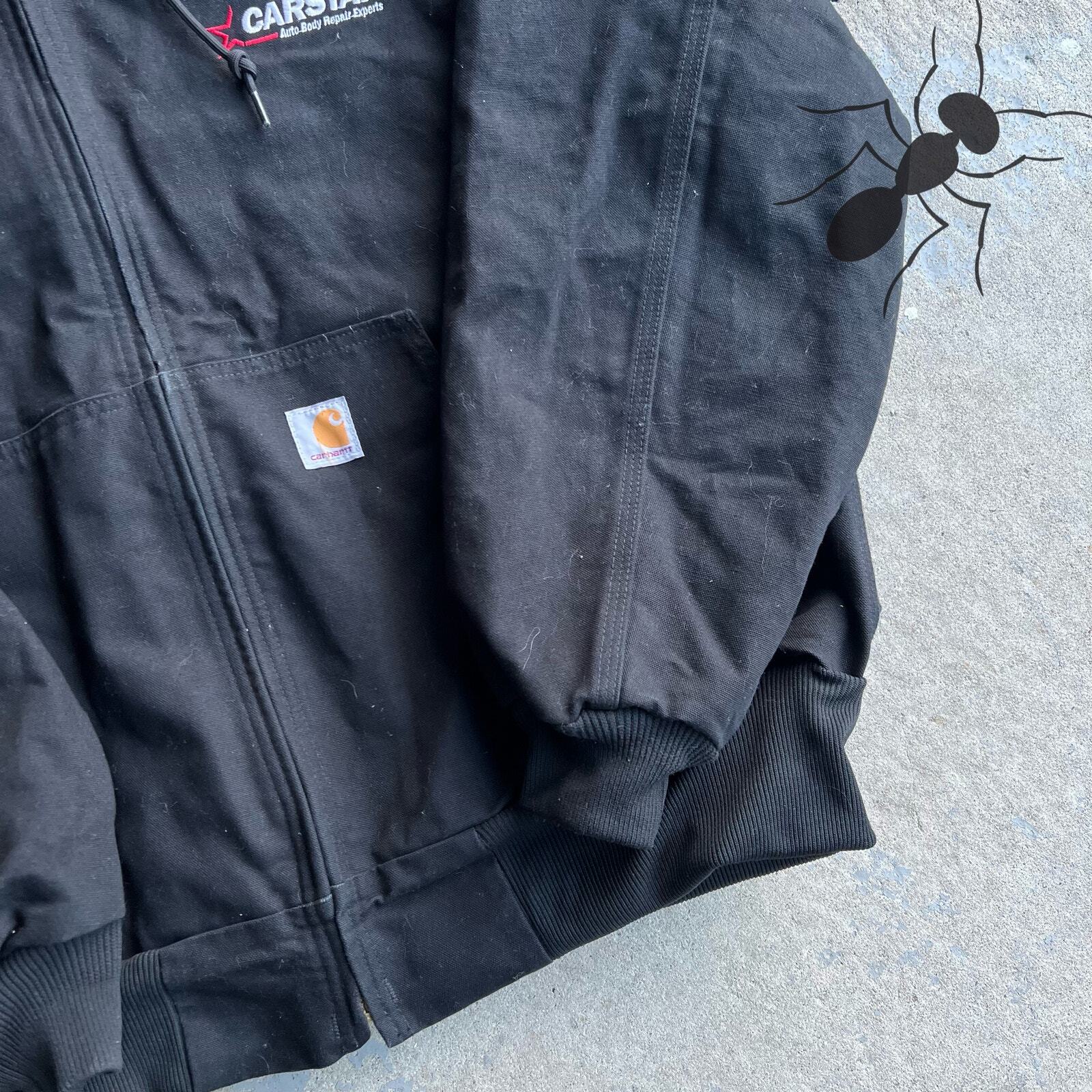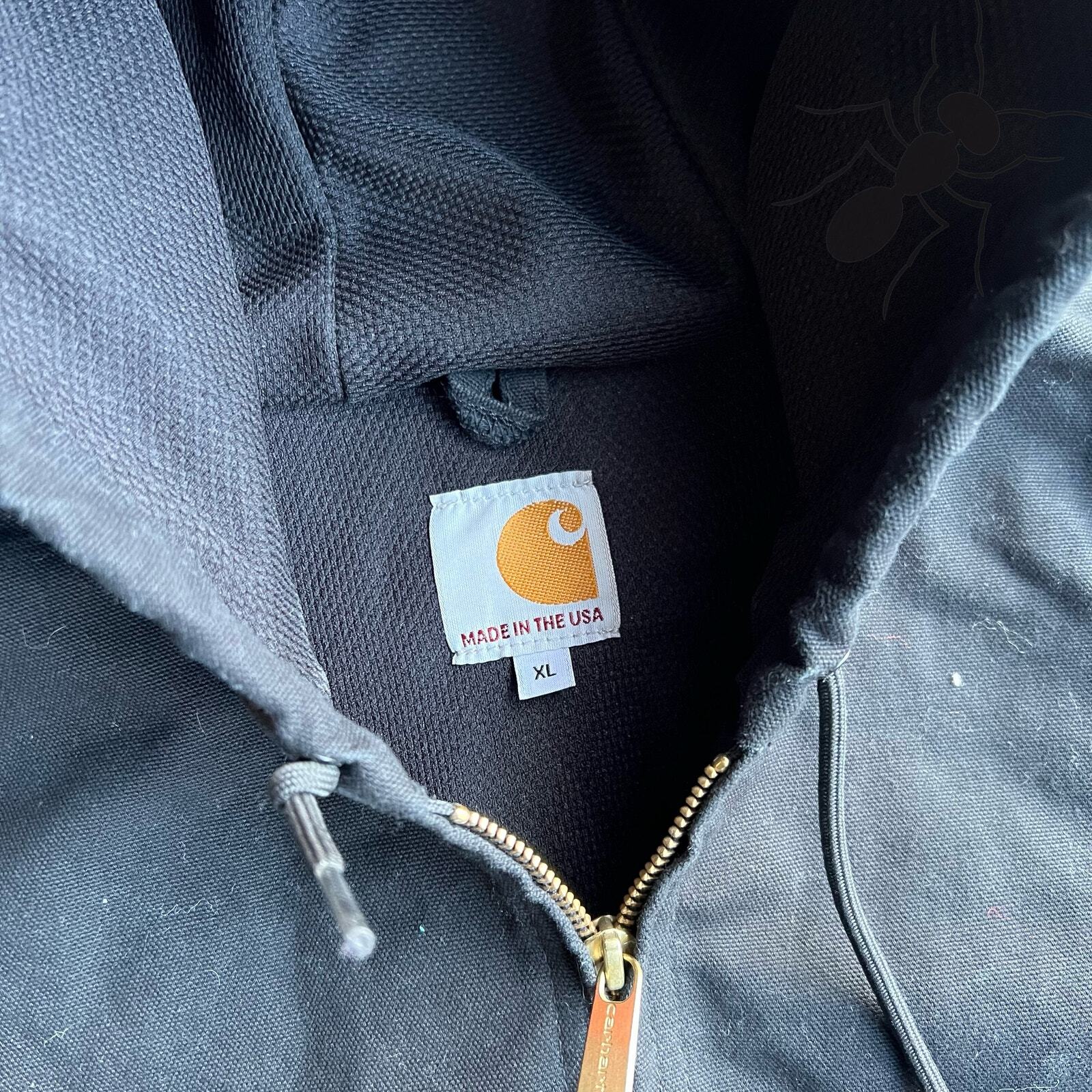 Vintage black active y2k carhartt hooded work wear jacket. Good one. Needs a lint roll but overall great condition. Measures 28.5x28.5. Please check measurements before purchasing. I do my best to show any flaws in pictures. Quick shipping! Bundles encouraged! @ants_haul on Instagram.